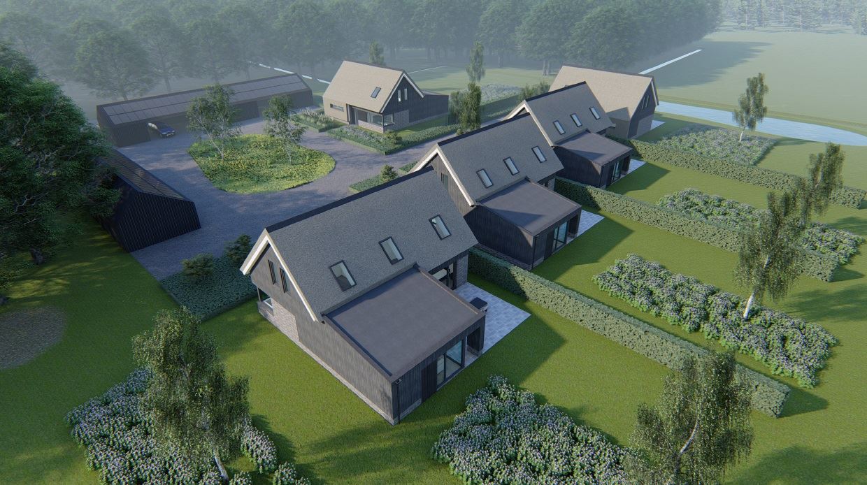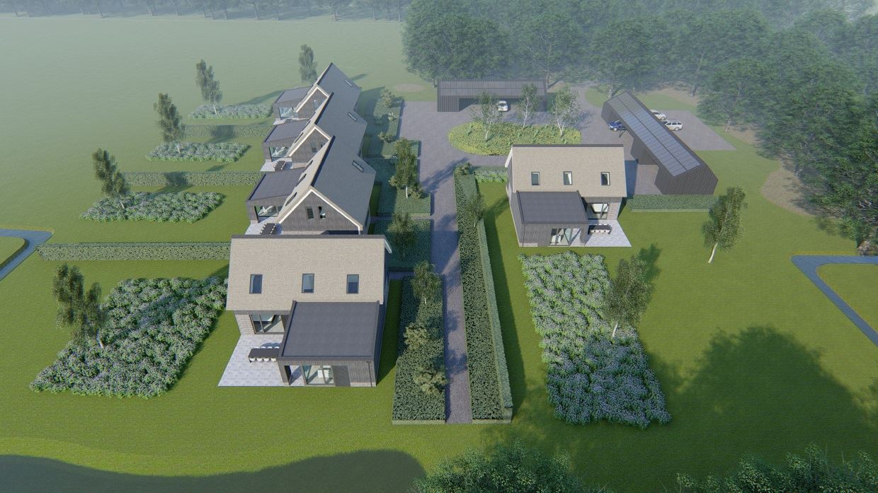 Op een prachtige plek op het landgoed wordt een erf gerealiseerd dat bestaat uit vijf hoogwaardige, vrijstaande huizen. Zo wordt, op slechts enkele kilometers van het centrum van Zwolle, landelijk wonen op een prachtig landgoed mogelijk gemaakt. Deze rietgedekte woningen worden energiezuinig gebouwd, met toepassing van hoogwaardige materialen. Voor meer informatie over dit project wordt verwezen naar de websites van de makelaar en Funda via: